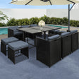 Gardeon Outdoor Dining Set 11 Piece Wicker Table Chairs Setting Black