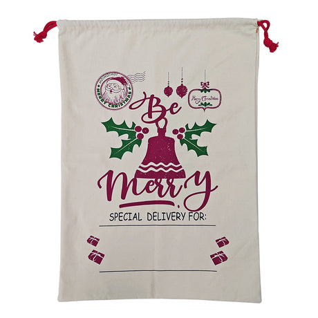 Large Christmas XMAS Hessian Santa Sack Stocking Bag Reindeer Children Gifts Bag, Cream - Bell