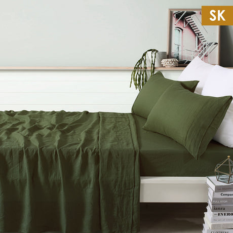 Vintage Design Homewares 100% Linen Olive Sheet Set Super King