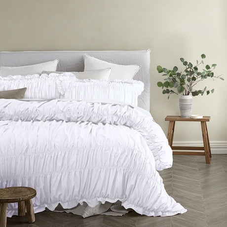 Vintage Design Homewares Haven White Washed Cotton Ruched Quilt Cover Set King