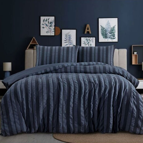 Ardor Sommer Indigo Seersucker Stripe Quilt Cover Set Queen