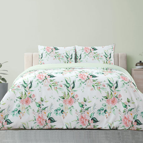 Ardor Rose Whisper Soft Sage Printed Floral Quilt Cover Set Double