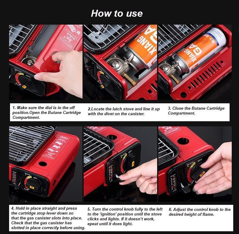 Portable Gas Stove Burner Butane BBQ Camping Gas Cooker With Non Stick Plate Black without Fish Pan and Lid