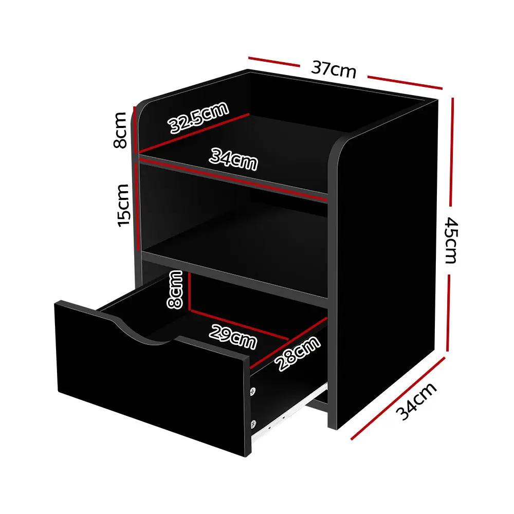 Artiss Bedside Table 1 Drawer with Shelf - FARA Black