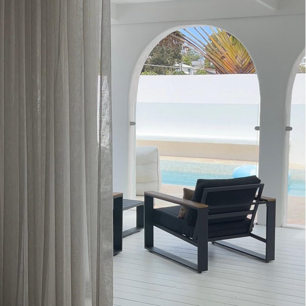 Create a stylish alfresco area with this contemporary designed lounge setting. Constructed from a powder coated aluminium with teak timber trimming