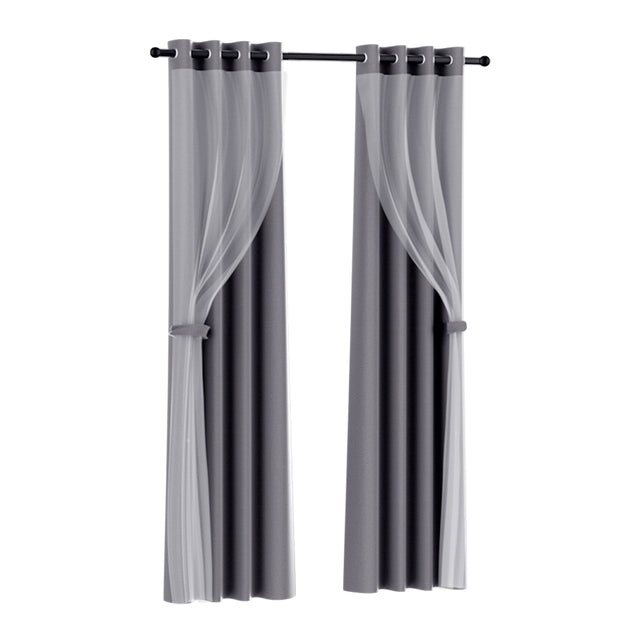 Artiss 2X 132x213cm Blockout Sheer Curtains Charcoal