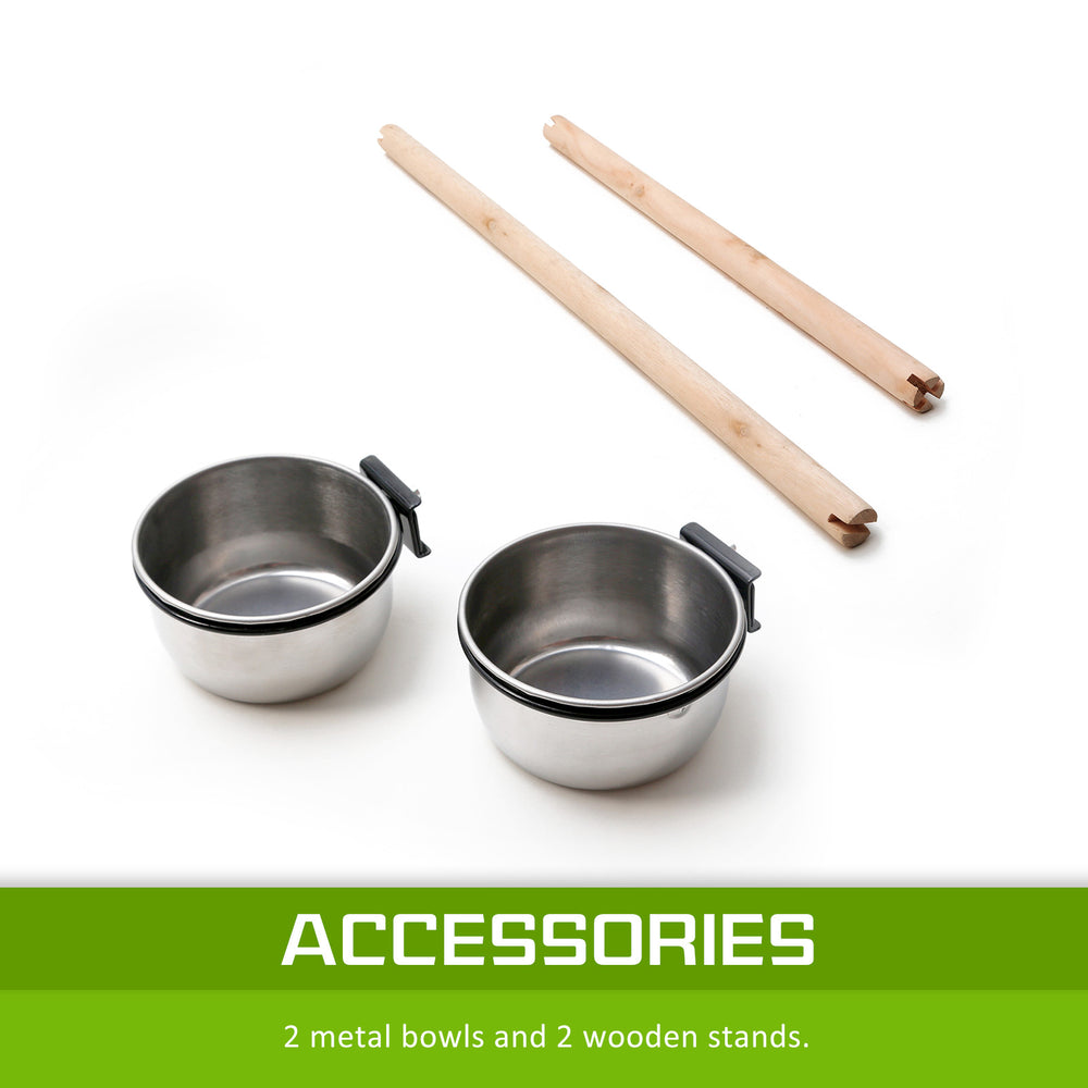 - Fitted with 2 wooden perches