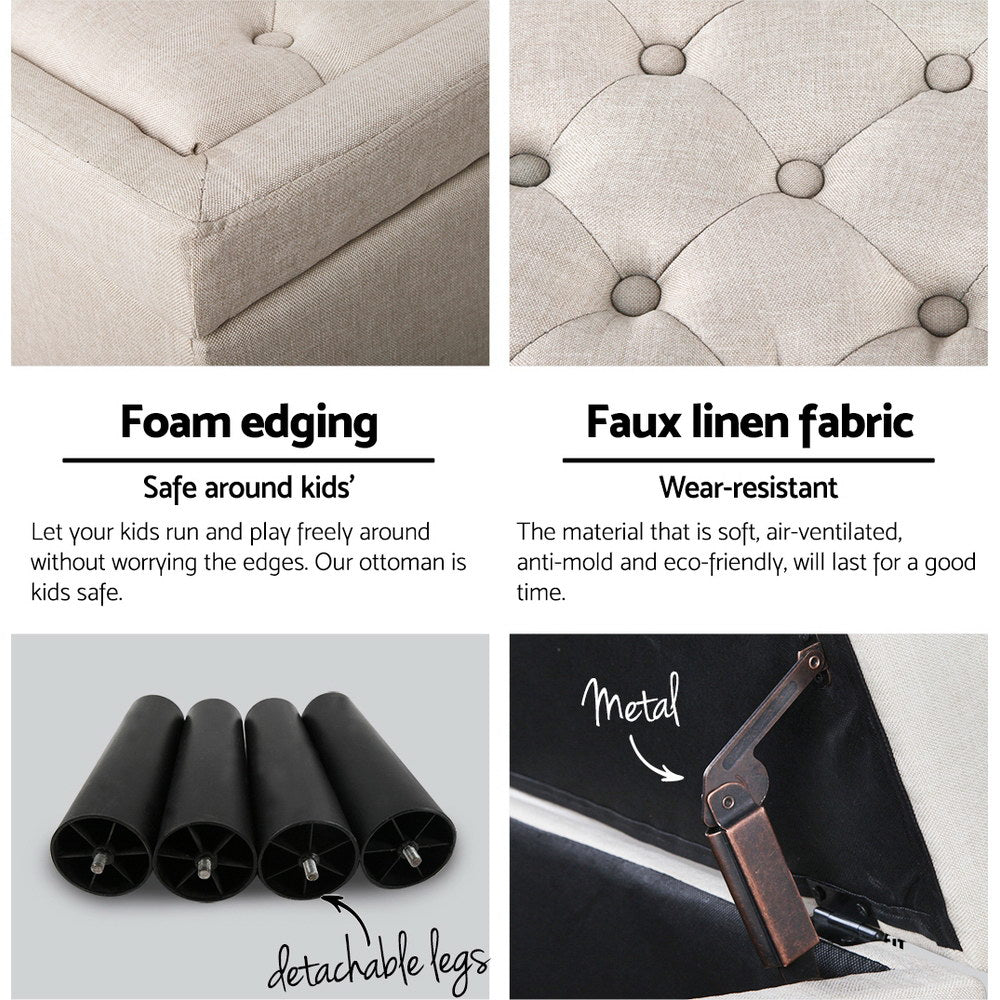 Artiss Storage Ottoman Blanket Box 96cm Linen Taupe