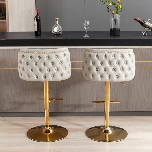 Comfortable and Adjustable: Enjoy the softness and comfort of these height-adjustable bar stools, which come in a set of 2. The high-density foam padding in the cushions provides a plush seating experience. With a wide seat and a curved wingback backrest, these stools offer ergonomic support. Additionally, the stools feature a gold footrest for relaxed foot positioning.