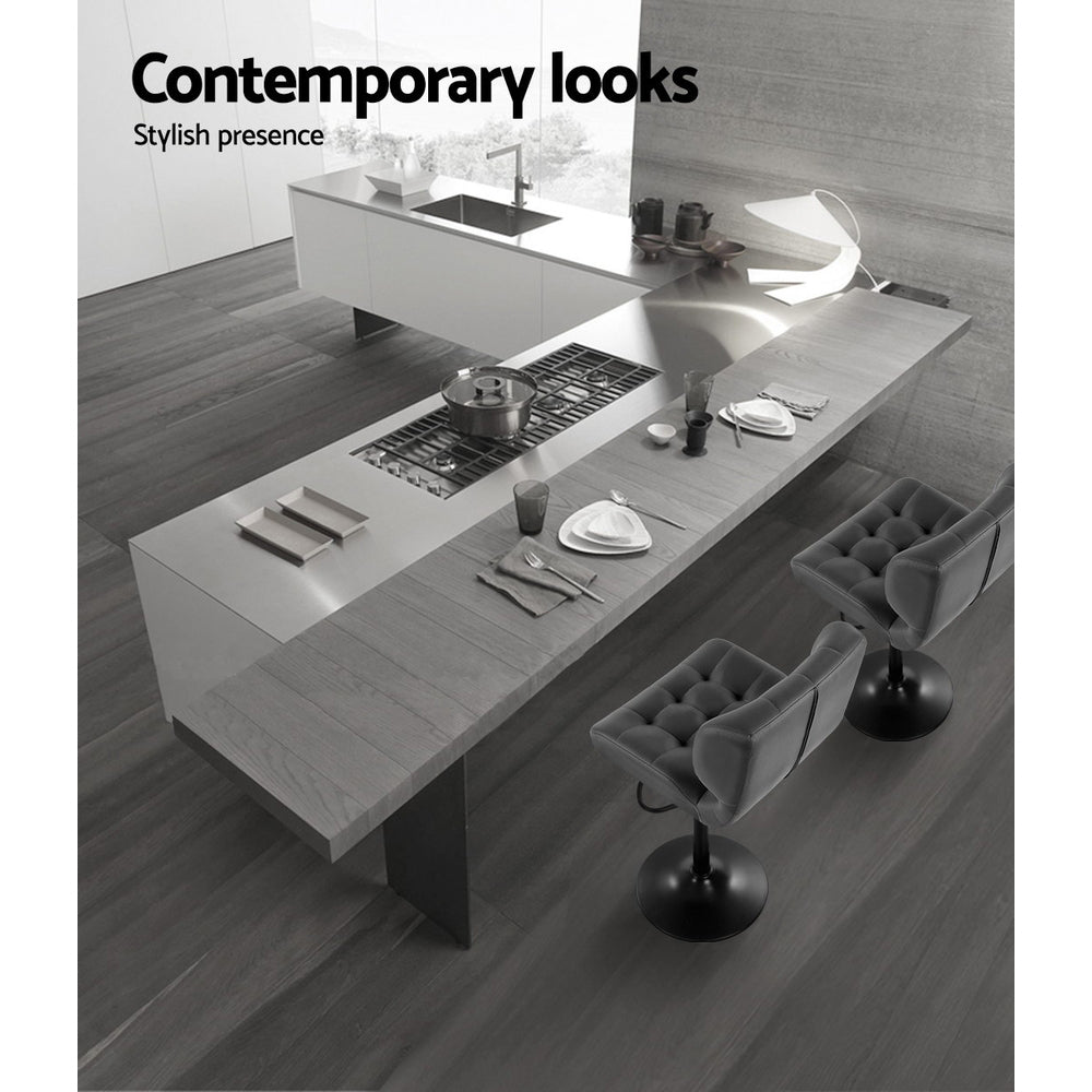 Artiss 2x Bar Stools Gas Lift Leather Padded Grey