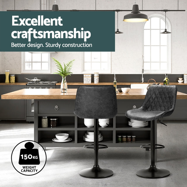 Not an ordinary piece of furniture but stands out in every aspect, whether it's craftsmanship, style, upholstery, comfort, or quality that speaks for itself. If you're after achieving an elegant vintage yet contemporary feel in your space, our Artiss' Rushal bar stools with an elegant back and seat design are just perfect. They're great for catchups over coffee with friends, a jam session with the band, or daily living. Our bar stools are uniquely designed that will make you want them in your space. You can style our Rushal bar stools anywhere, from living rooms to kitchen and the bar section, they will effortlessly fuse in any décor and lend an elegant vintage feel to your space. These bar stools can even be used as an impromptu seat when you need extra sitting space. Featuring an elegant diamond back design with beautiful PU vintage leather upholstery, our bar stools have thick foam soft padded seats, sturdy powder-coated pedestal base, adjustable height with SGS-tested gas lift, and floor protector for ultimate stability and scratch-free floors. Their solid structure ensures longlasting use and superb durability. They also feature 360 degree rotatable seat so you can face any direction for ease of conversing with guests and family. Our Rushal bar stools make a timeless piece of furniture, and with two colour options, you can choose that best complements your space and suits your taste. Artiss' Rushal bar stools would make a gorgeous addition to your space. Shop them today!