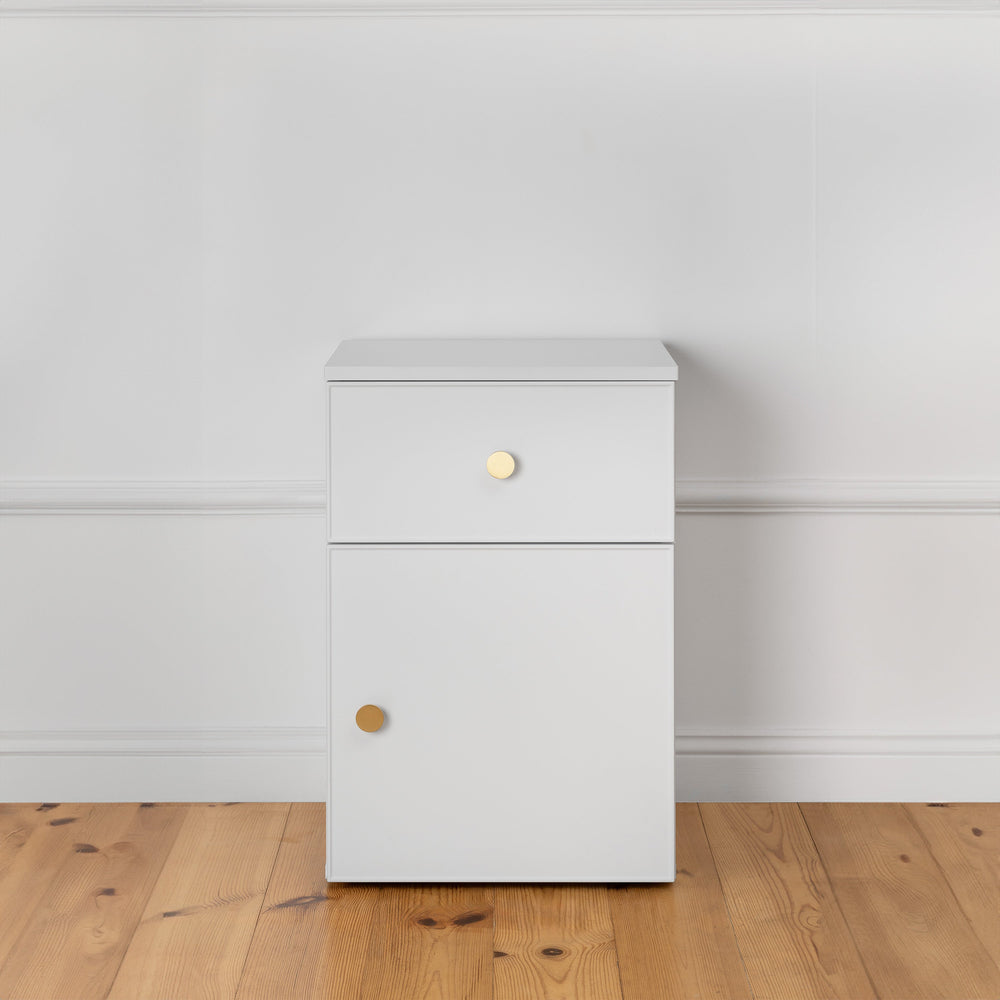 PORTO BEDSIDE TABLE - WHITE - SLIM - ROUND BRASS