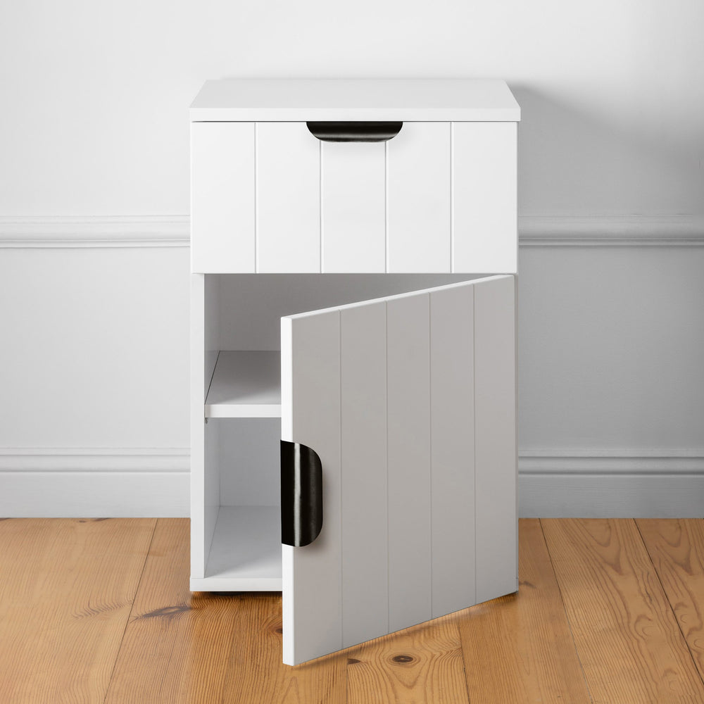 PORTO BEDSIDE TABLE - WHITE - VJ PANEL - PULL BLACK