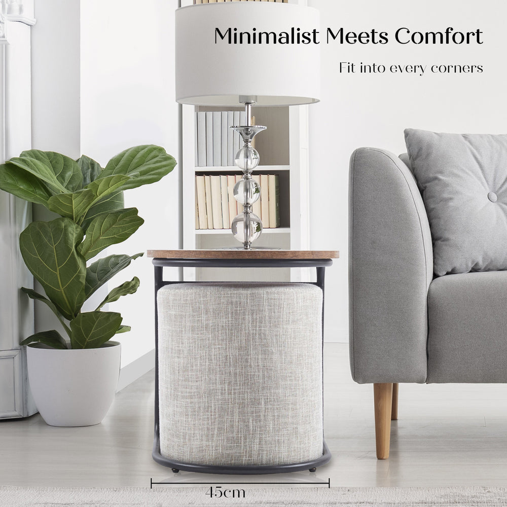 3 Piece Set Coffee Table & Ottoman Wood Side End Table Industrial - CREAM GREY