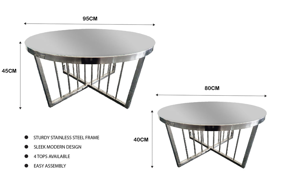 Salina Coffee Table 80cm Silver Base - Mirror Glass