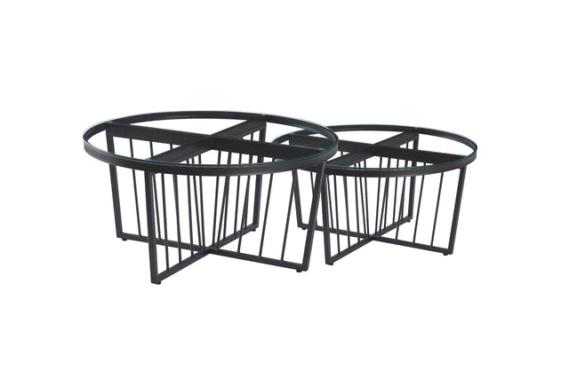 Add a touch of elegance to your living room or bedroom with the Salina Coffee Table in black. This versatile piece of furniture is available in a black metal frame with a tempered glass top.