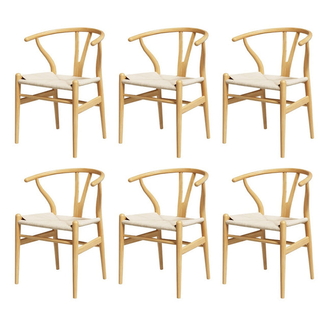 1 Set of 6 Artiss Dining Chairs Wooden Rattan Seat Wishbone Back