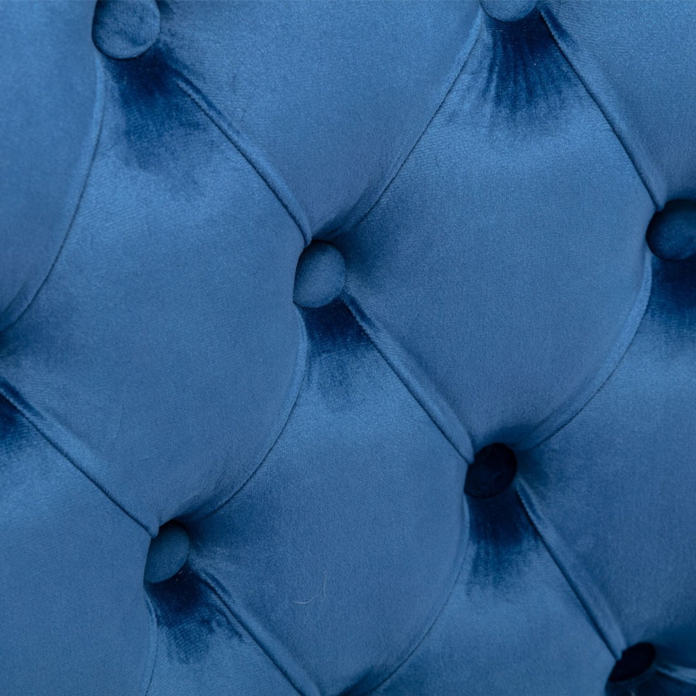 2x Velvet Dining Chairs Upholstered Tufted Kithcen Chair with Solid Wood Legs Stud Trim and Ring-Blue