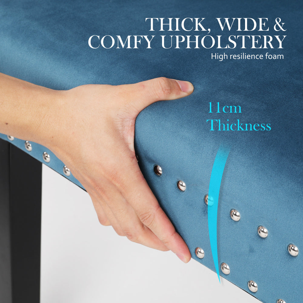 4X French Provincial Dining Chair Ring Studded Velvet Rubberwood Leg LISSE NAVY BLUE