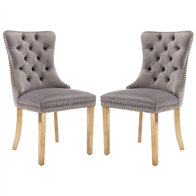AADEN 2x Velvet Dining Chairs with Golden Metal Legs-Grey