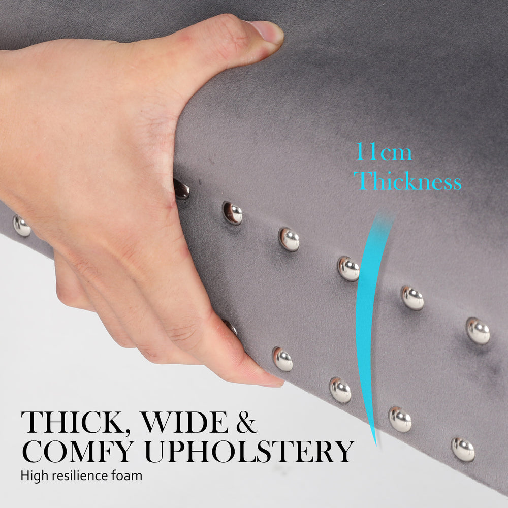With thick padded with 11cm high resilience foam and wider than the normal cushioned seat. All these features will no doubt give top maximum comfort. Elegant upholstered, together with silver studding embellished by hand on edges add highlights to the chair.