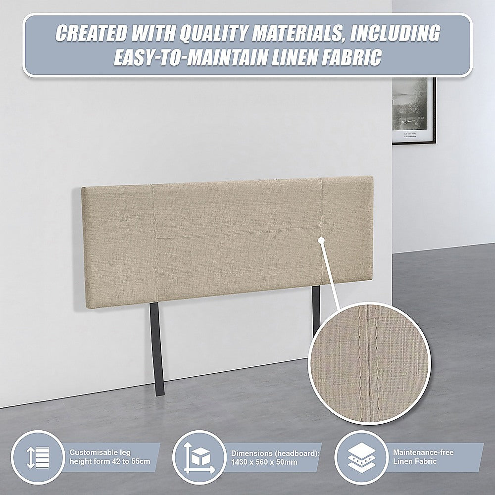 Linen Fabric Double Bed Headboard Bedhead - Beige