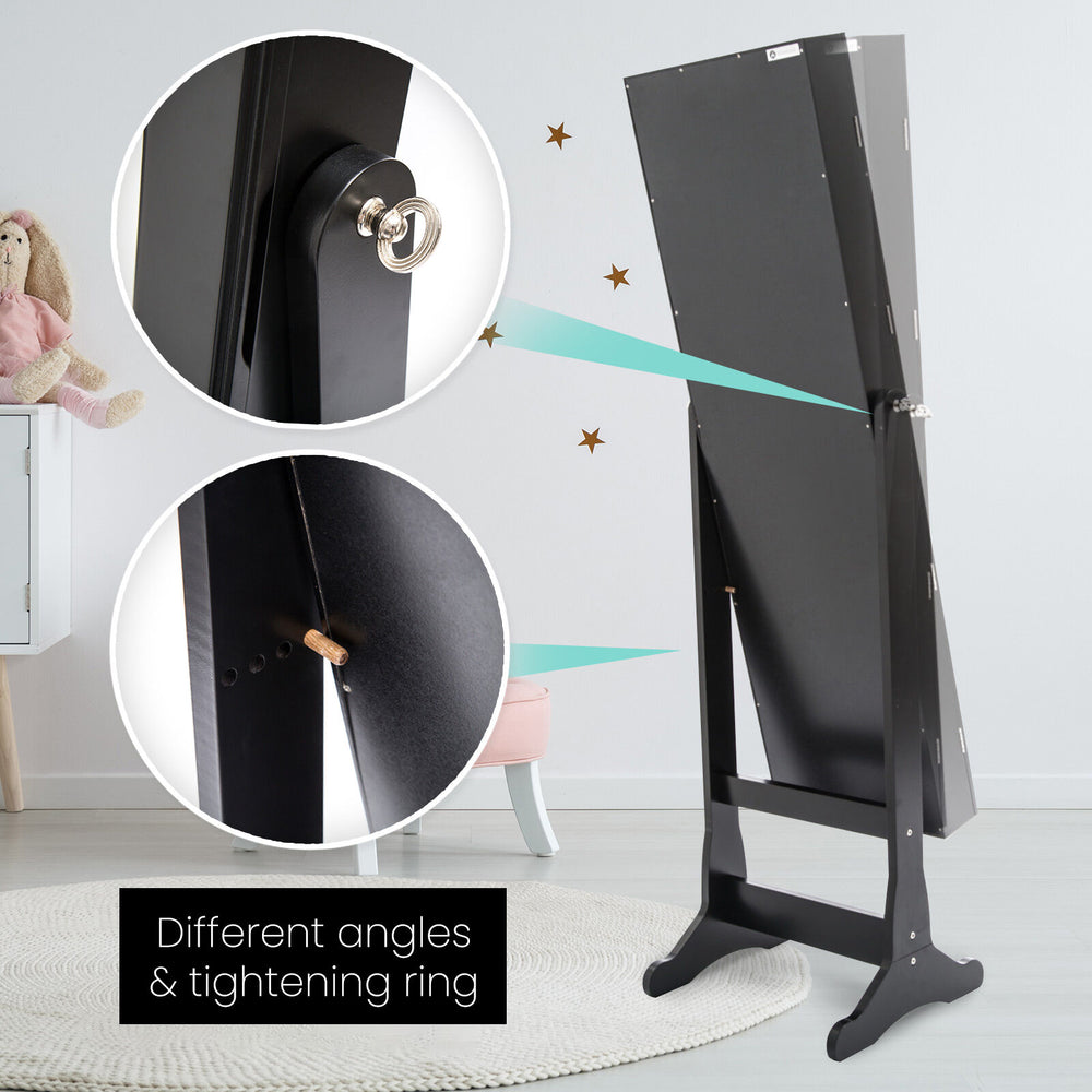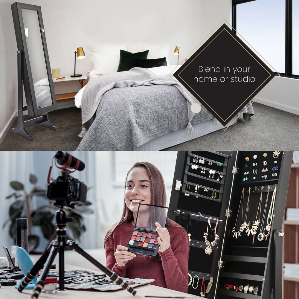 La Bella Mirror Jewellery Cabinet LOWE 146cm Organiser 2 Drawers - Black