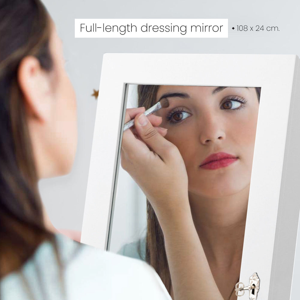 La Bella Mirror Jewellery Cabinet LOWE 146cm Organiser 2 Drawers - White