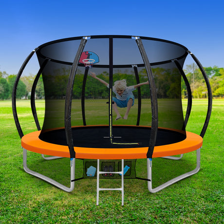 Everfit 10FT Trampoline for Kids w/ Ladder Enclosure Safety Net Rebounder Orange