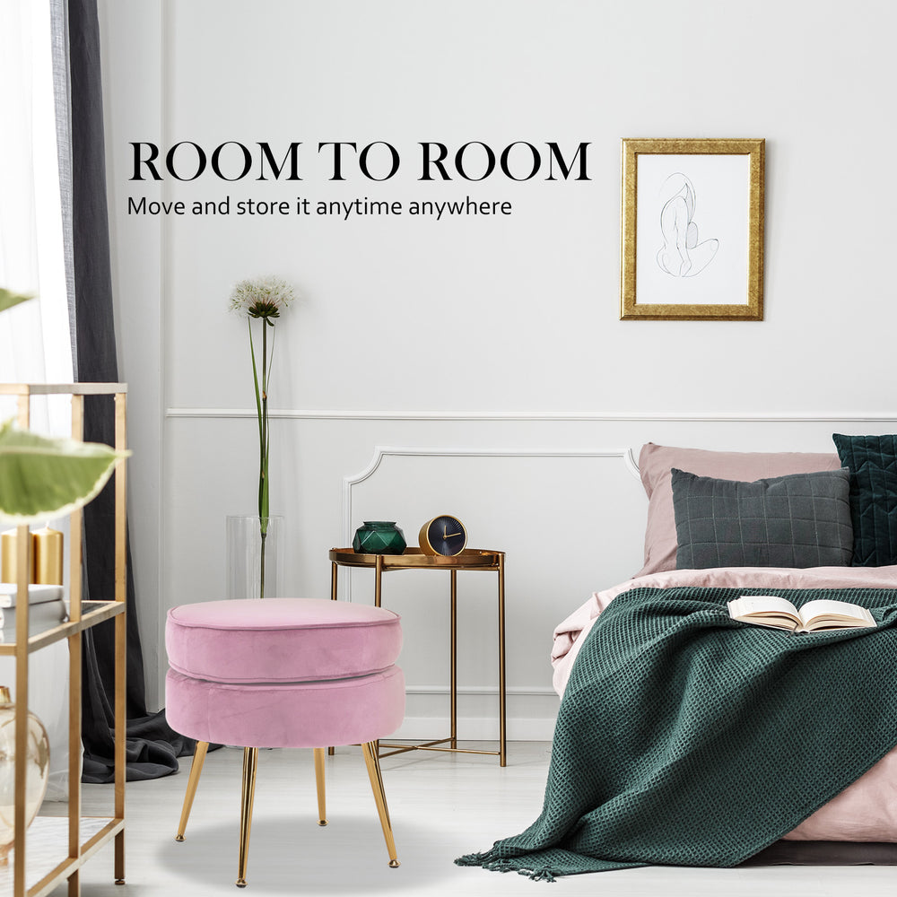 Ottoman Foot Stool Velvet Fabric Metal Leg Round PINK