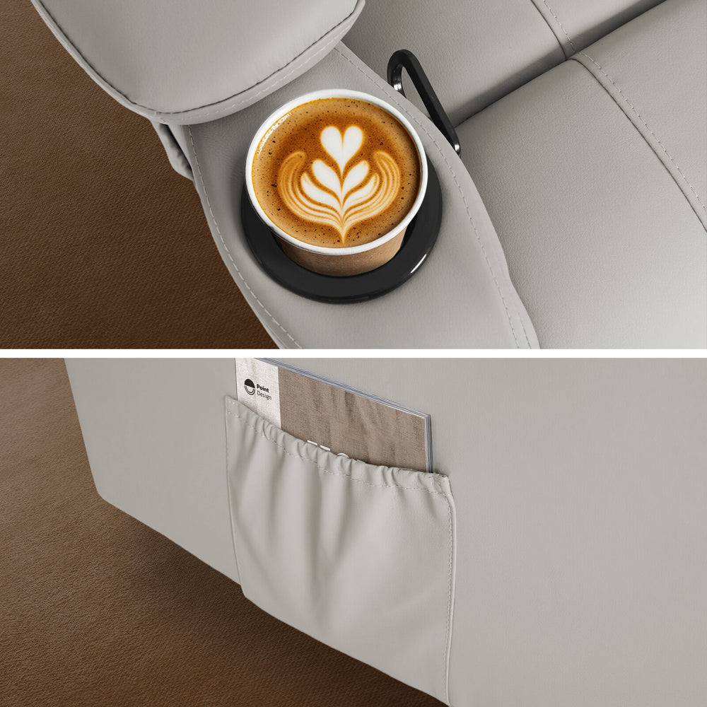 Built-in cup holders give you space for a drink, the remote or even a snack or your phone, just the little things that make relaxing easier. From reading corners to media rooms, this chair brings calm to any space it touches.