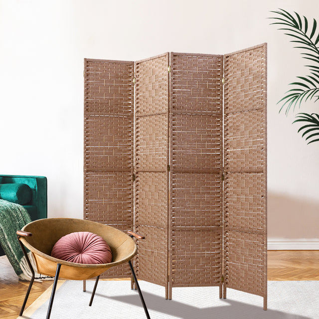 4 Panel Room Divider Screen 163x170cm Hand Woven Rattan