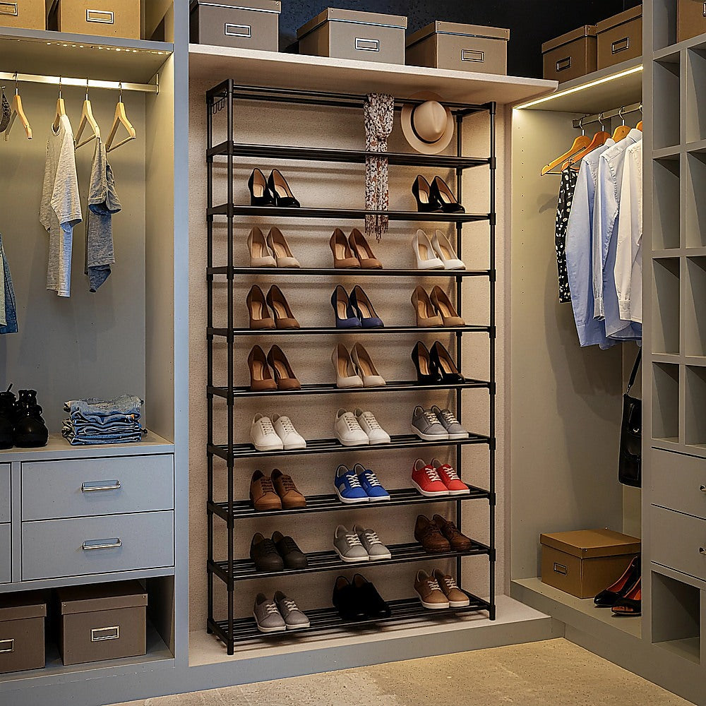 10-Tier Metal Shoe Rack Black – Large 50-Pair Shoe Storage Organiser Shelf