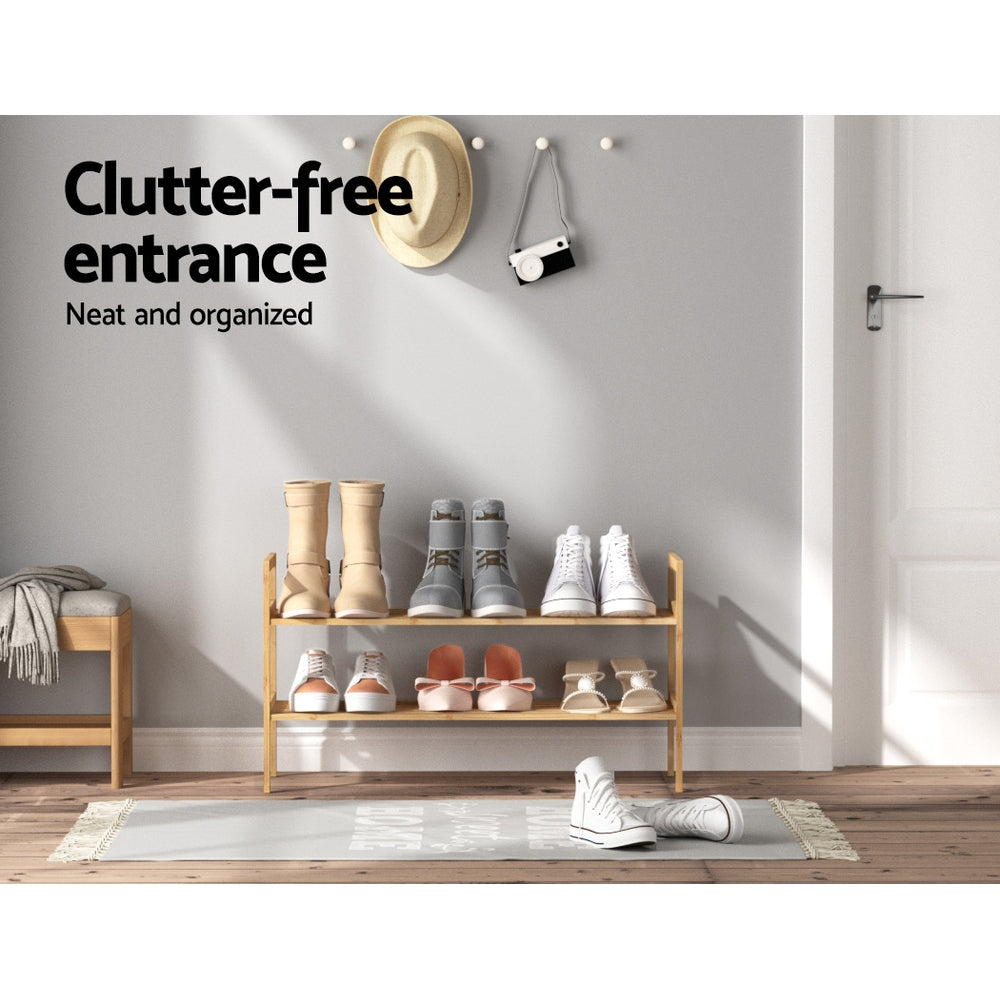 Artiss Shoe Rack Cabinet Bamboo Storage Organiser Pine
