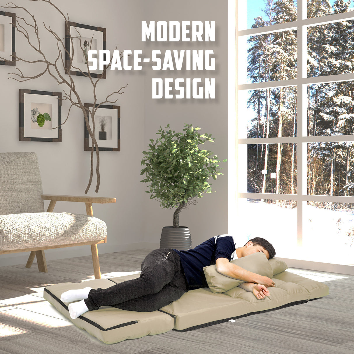 Double seat floor sofa bed, 5 positions, 3 adjustable angles.