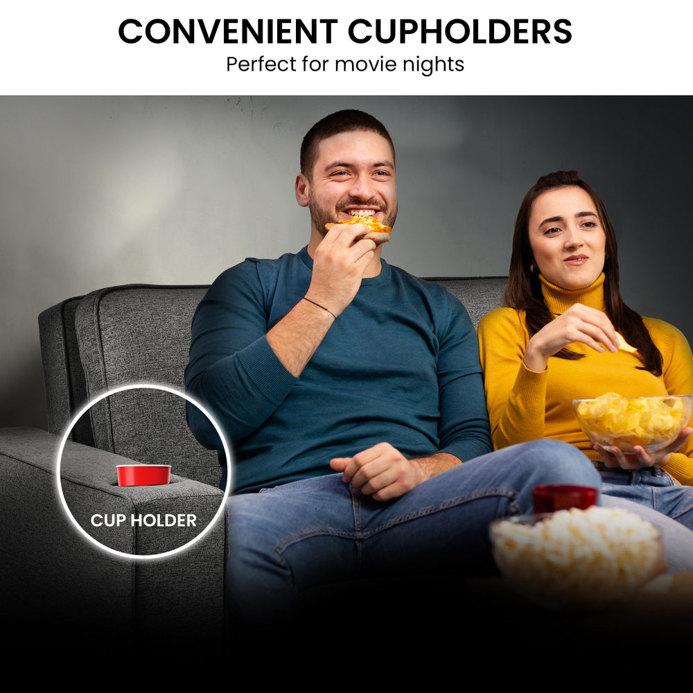 Sarantino Hoffman Linen Dark Grey Convertible Sofa Bed Couch Lounge With Cushions Cupholders Scandinavian-style Wooden Frame And Legs