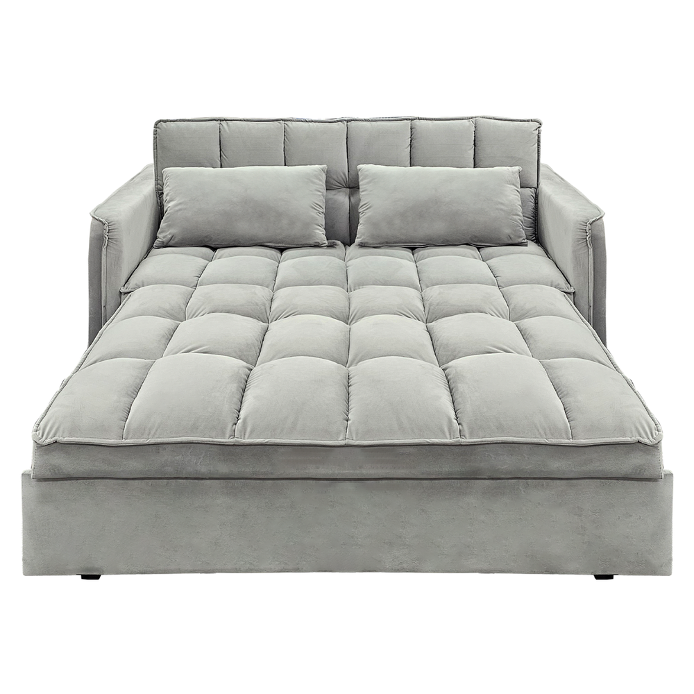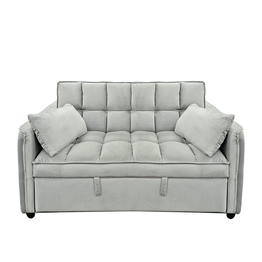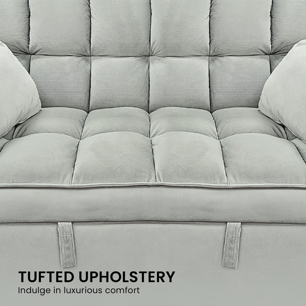 Sarantino Quincy 2-Seater Velvet Sofa Bed in Light Grey with Wooden Frame and Tufted Design