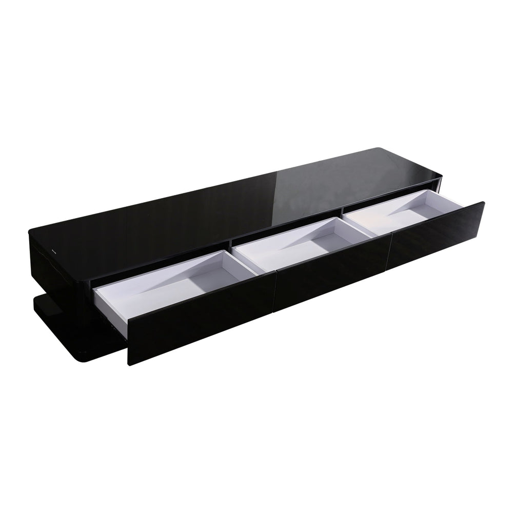 TV Cabinet with 3 Storage Drawers With High Glossy Assembled Entertainment Unit in Black colour