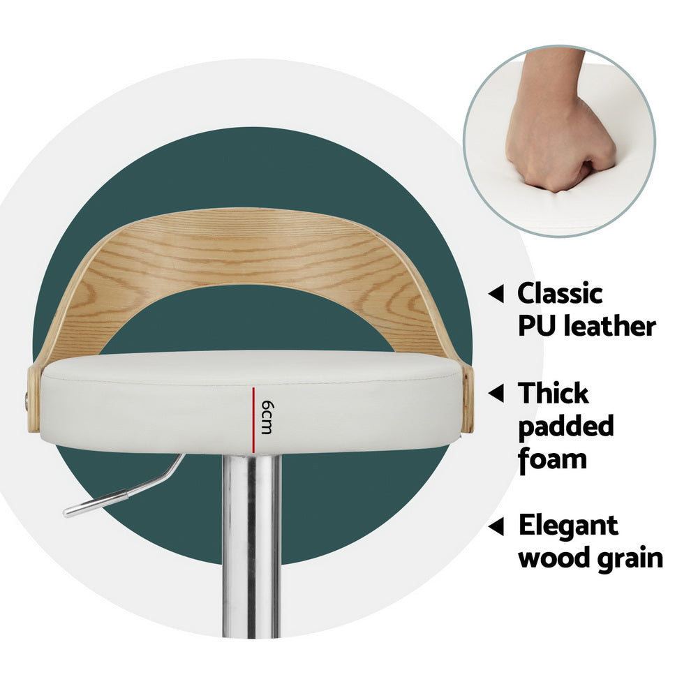 Artiss 4x Bar Stools Adjustable Leather Padded White