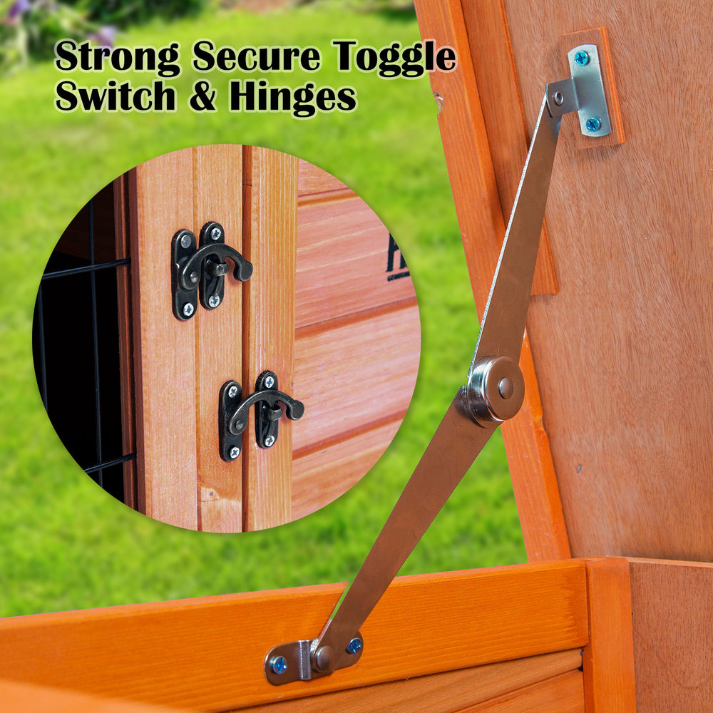 If they are living outdoors, it is important to keep them cool on hot days as they are prone to heat stress which can be fatal. Not to mention, our hutch features a well-insulated and weatherproof green asphalt roof that can withstand heat, rain, and wintry weather.