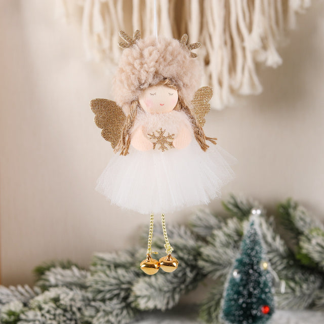 Bring a delicate sparkle to your holiday decor with this Gold and White Angel Ornament. Featuring soft golden wings, a fluffy headpiece, and gold bells as feet, this angel adds a touch of whimsical elegance to your Christmas tree. The angel holds a glittery snowflake, symbolizing the joy of the winter season. Perfect for hanging on trees, wreaths, or around the house for a magical festive atmosphere.