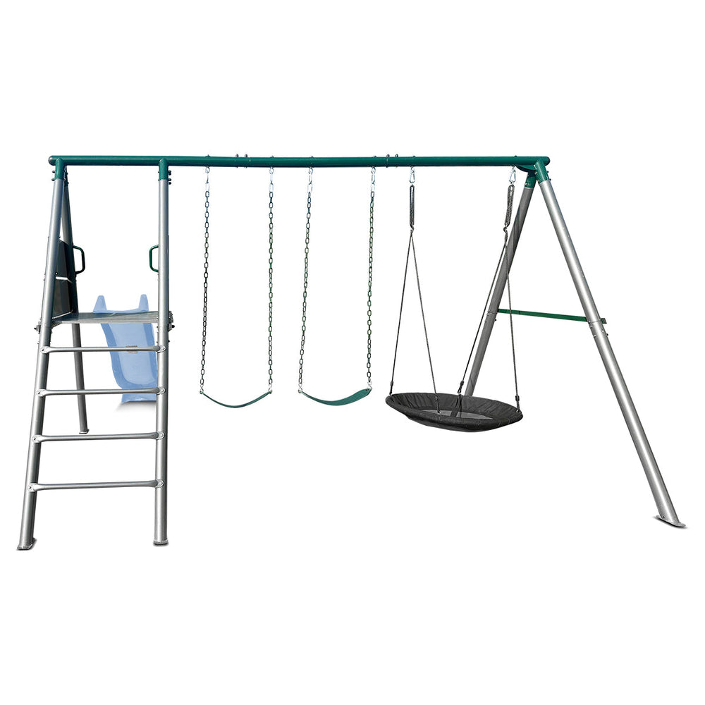 The Europa Heavy Duty Swing Set is a premium playset designed for ultimate backyard fun and durability. Built with commercial-grade galvanised steel, it offers a strong, stable structure that can handle rough play and changing weather. Featuring a smooth, thrilling 2.2m slide and heavy-duty swings, this set brings the excitement of a playground right to your home, making it perfect for active kids and endless outdoor adventures.