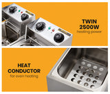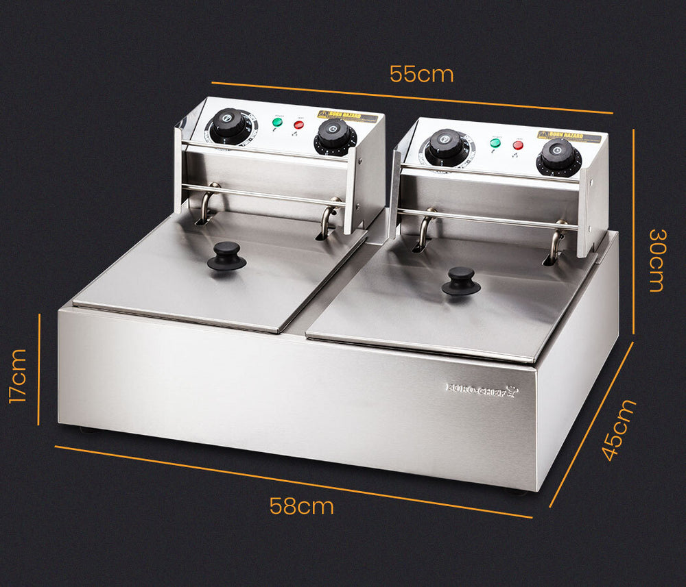 EuroChef Commercial Electric Deep Fryer Twin Frying Basket Chip Cooker Fry