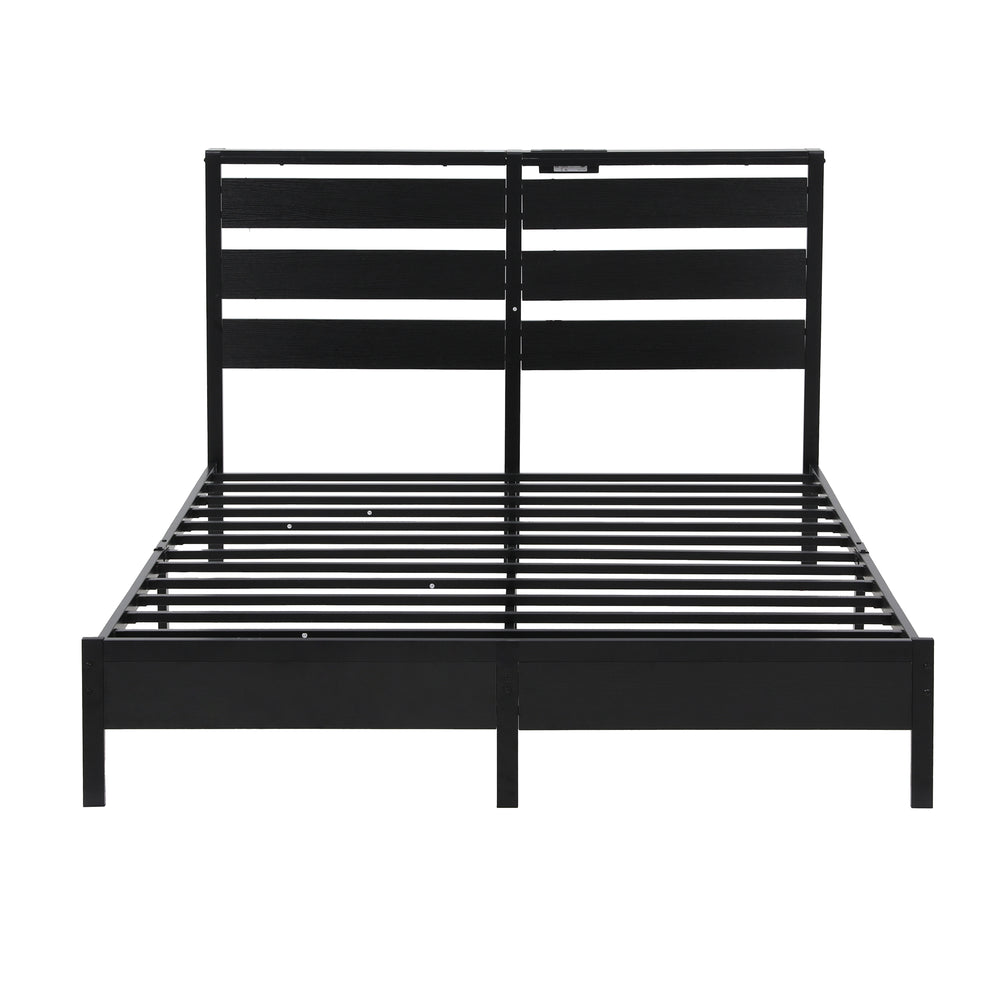 Transform your bedroom with POR metal bed frame that glows with style. Built-in LED strips offer 16 colours choices and multiple modes — Music, Mic, and Timing — to match your mood or playlist. Adjust colors and brightness through the mobile app for an immersive and personalized sleep space. The bed frame headboard shelves offer a convenient storage solution, keeping essentials within easy reach and providing an additional space for decorating your cherished home.This heavy duty metal platform bed frame with charging station,it is convenient for your tablets, cell phones or other electric devices.
