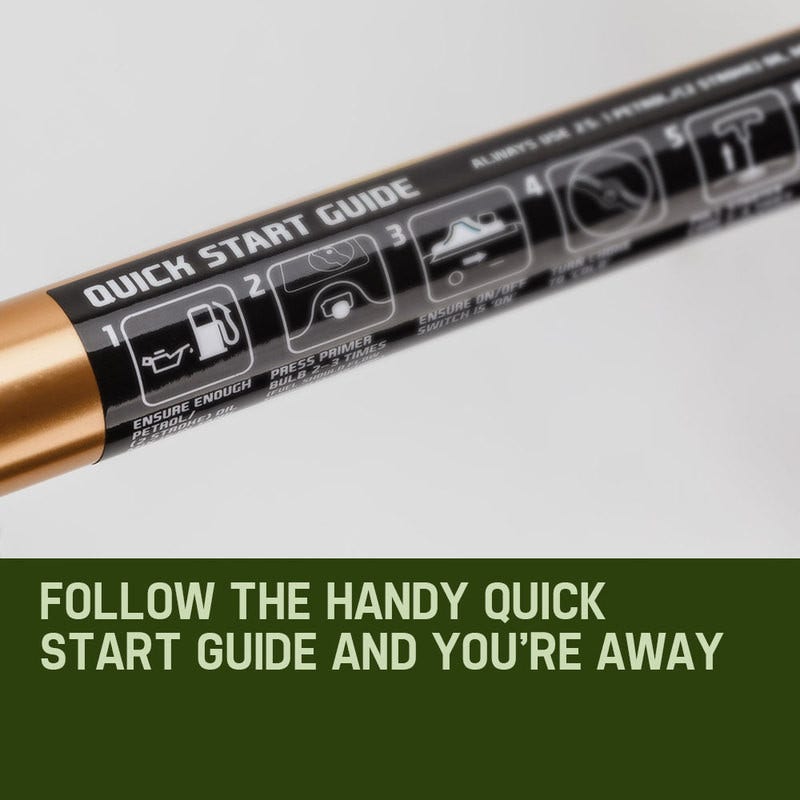 Utilising premium anodized commercial alloy, your Baumr-AG features commercial grade quick connect couplings equipped with dual ball-bearing floating centres. While its extensions reach from 2.3 up to a massive 4 metres, genuine commercial nine spline fastening ensures maximum stability - a must for safely tackling those hard to reach branches. Built tough, your Baumr-AG boasts unparalleled levels of quality backed by an extensive 12 month warranty. Buy now and this amazing package comes loaded with a bonus accessory kit, including protective goggles, gloves, earmuffs, mini toolkit and fuel mixer.