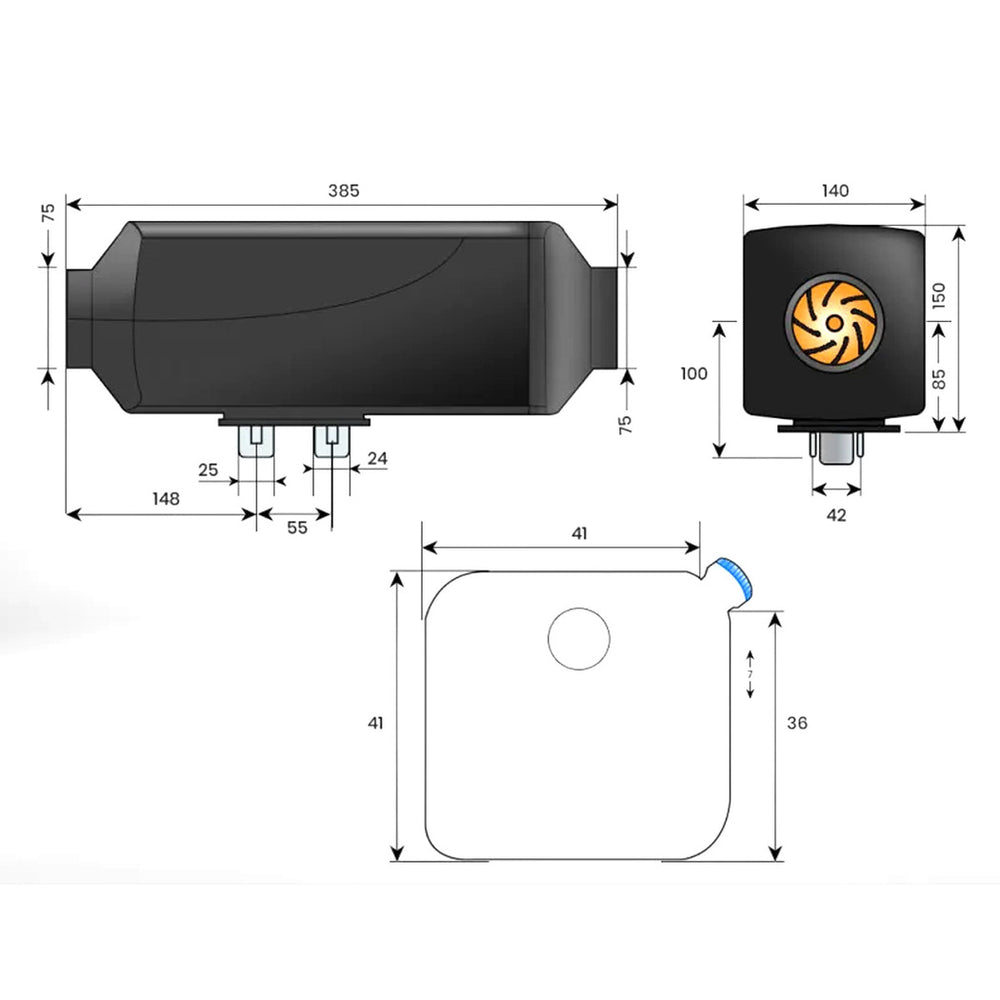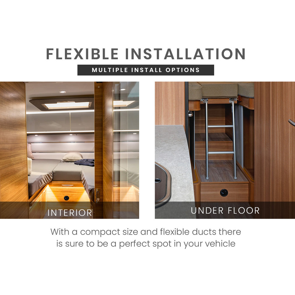 The Thermomate offers powerful, efficient performance thanks to a unique heatsink design that is cast from premium 1050 grade aluminum offering superior thermal conductivity. Whether you're in a caravan, motorhome, camper trailer, truck or boat your space will be toasty in no time, and any frost on windows will quickly disappear. Once the target temperature is reached, the Thermomate is surprisingly quiet, so you'll have happy campers and everyone will enjoy a good night's sleep.