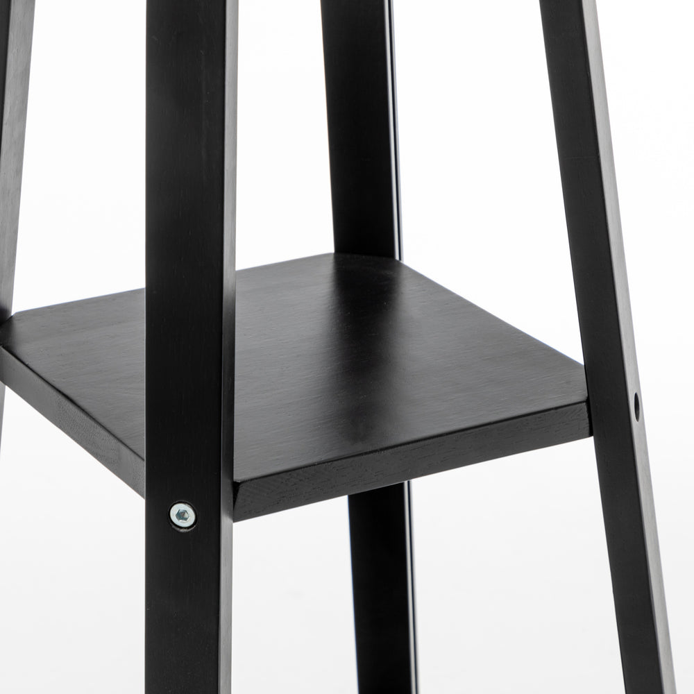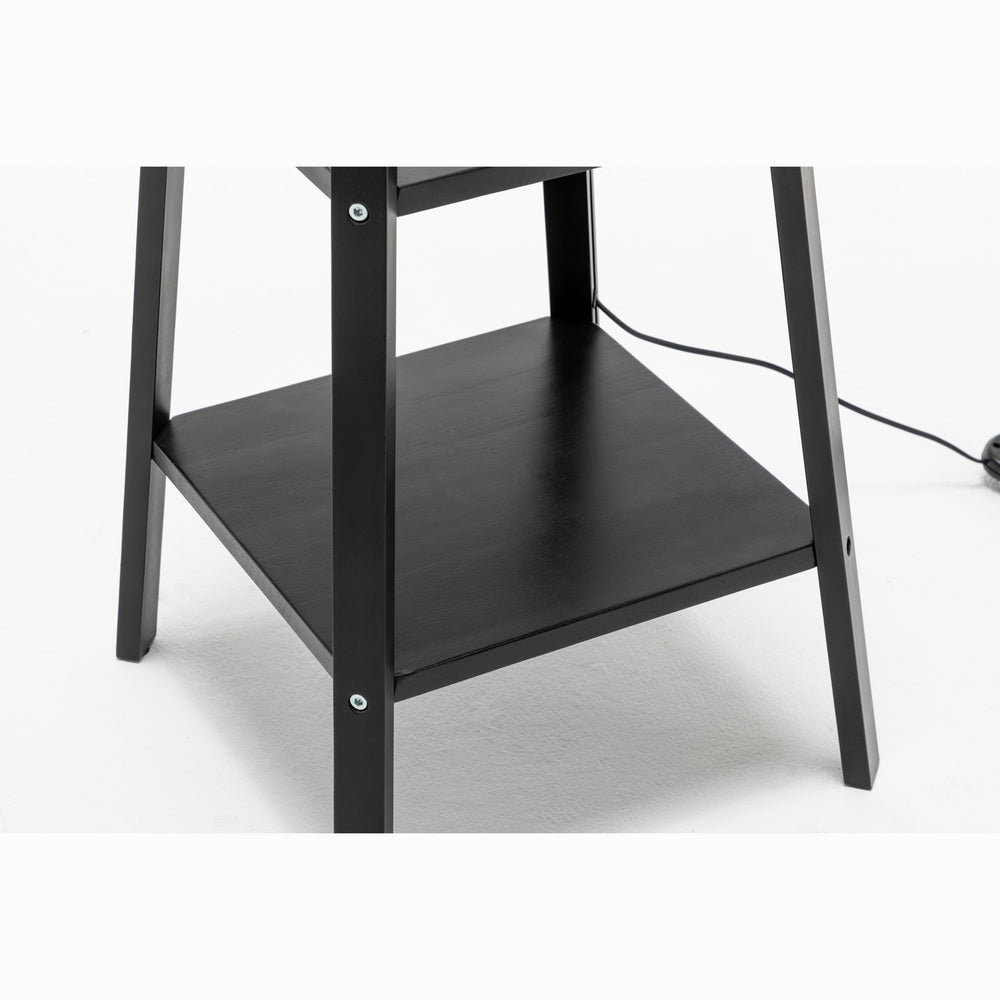 Eiffel 3 Tier Natural Wood Floor Lamp w/ Storage Shelves + Off White Linen Shade