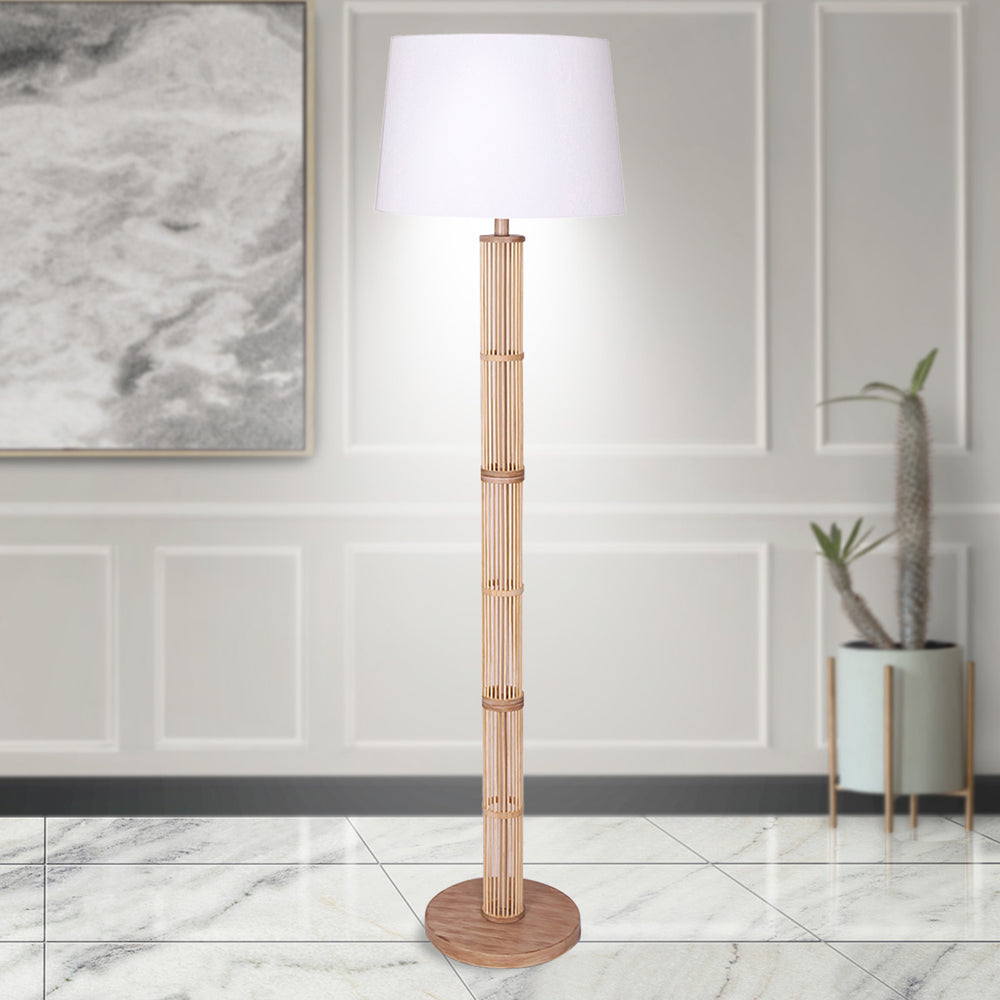 Sarantino Rattan Floor Lamp With Paper-White Linen Shade by Sarantino
