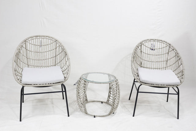 Upgrade your patio, garden, or balcony with this elegant 3-piece PE wicker furniture set. Designed for comfort and style, it includes two chairs and a glass-top table, perfect for relaxing or entertaining.