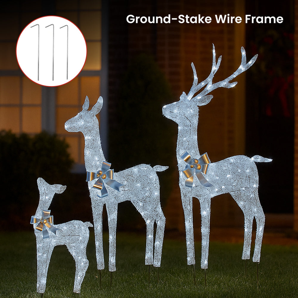 Christabelle Christmas Reindeer Display Set 3 Indoor & Outdoor Decorations Acrylic Beads Cool White LED Lights Silver